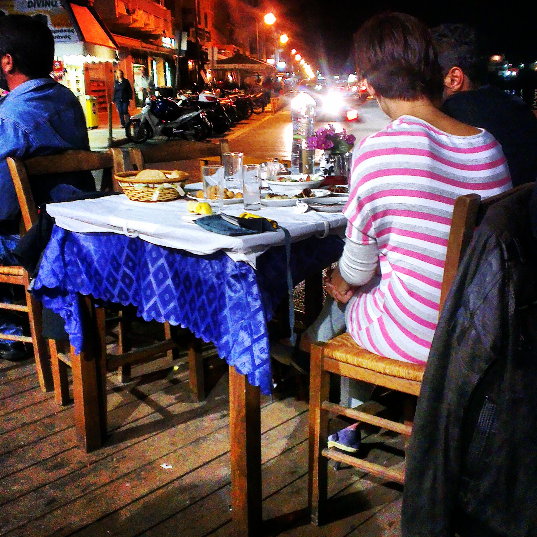 İlk akşam Delfinia isimli güzel bir tavernada yemek yedik. Ada mutfağı bizimkiyle neredeyse bire bir aynı; çok küçük farklarla ayrılıyor.