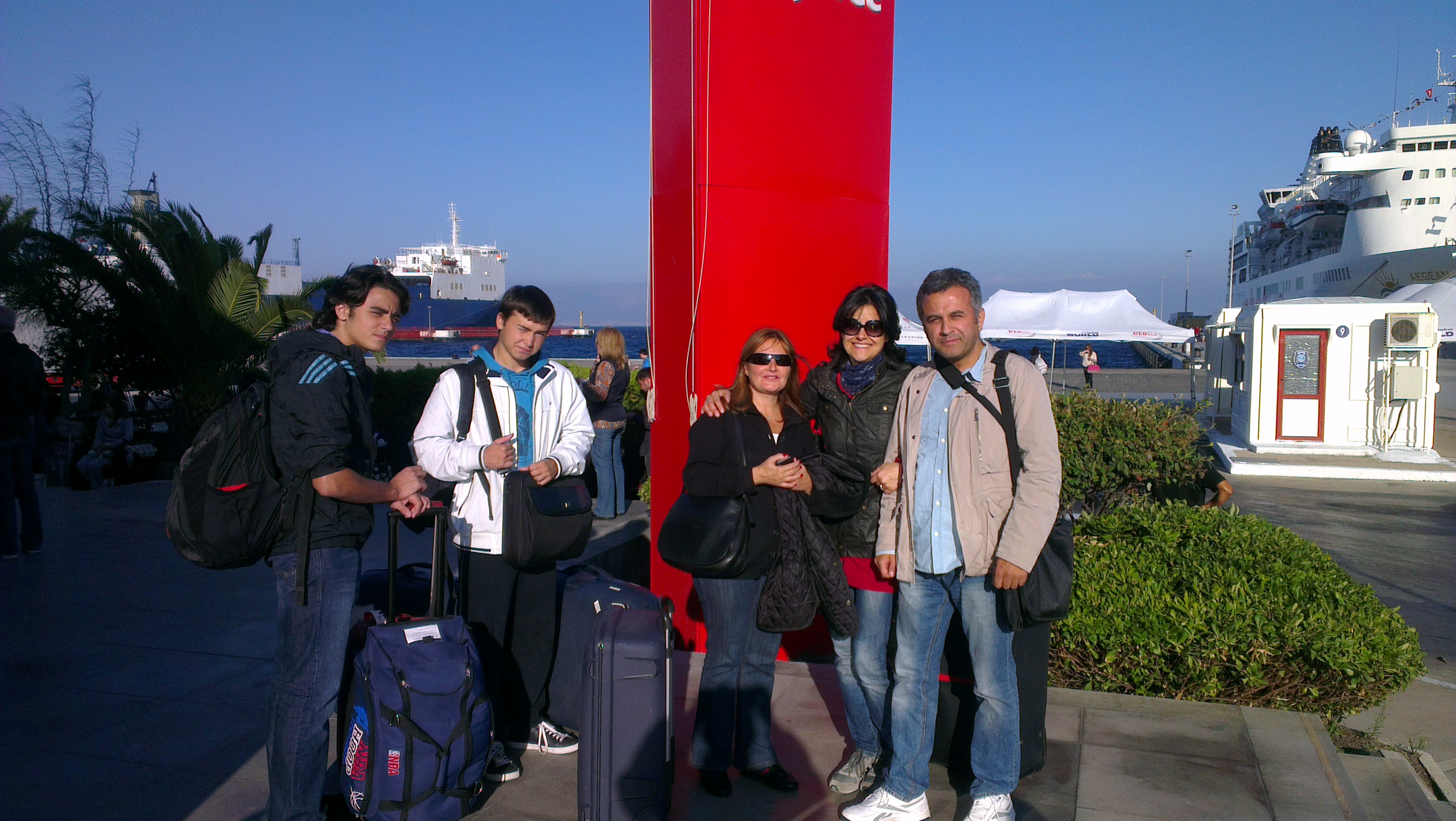 Sakız Adası gümrüğü bizim aynı zamanda vize alacağımız yerdi. Bizimle aynı zamanda yanaşan Ertürk Line’nin yolcularıyla birlikte bir kuyruğa girdik. Ancak anladığımız kadarıyla herkesin ya vizesi vardı ya ya da yeşil pasaportu bu kalabalık kısa sürede bitti ve biz bir kaç kişiyle birlikte büronun önünde kaldık.
