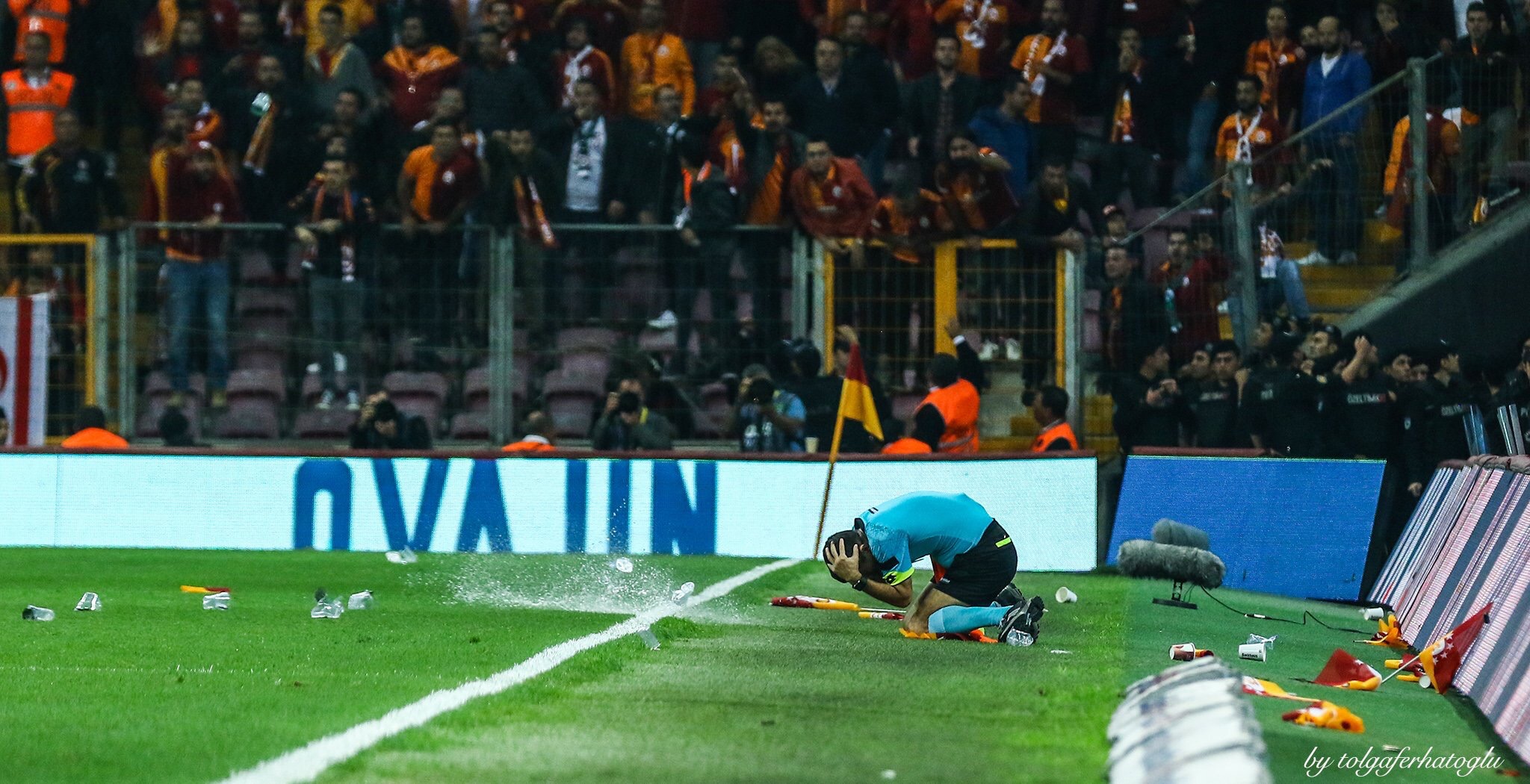 Janssen’in temiz topa müdahalesine devam diyemeyen yardımcı hakem ikinci yarı Galatasaray’ın lehine olan bir pozisyonda da devam dedi diye Galatasaray tribünlerinin hakemi pet şişe yağmuruna tutması ise bize 2007’deki sulu derbi gününü hatırlattı. Yüzüne isabet eden su şişesi sonrası uzunca bir süre yerden kalkamayan yardımcı hakem nedeniyle durdurduğu sürenin Cüneyt Çakır tarafından maçın sonuna eklenmemesi ise ayrı bir hakemlik meziyetiydi.