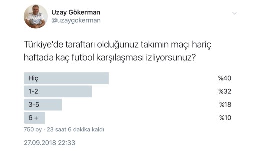Soru şuydu; Türkiye’de taraftarı olduğunuz takımın maçı hariç kaç futbol karşılaşması izliyorsunuz?