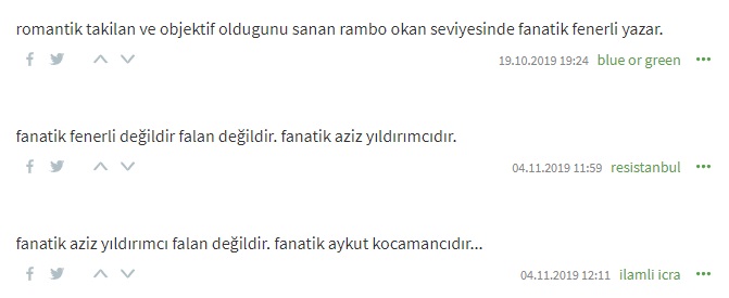 Benim Galatasaraylı ve Beşiktaşlı olduğum yönünde farklı internet sözlüklerinde entryler açıldı. Açanlar tabii Fenerbahçeliydi. Elbette kimse onlar kadar Fenerbahçeli olamaz.