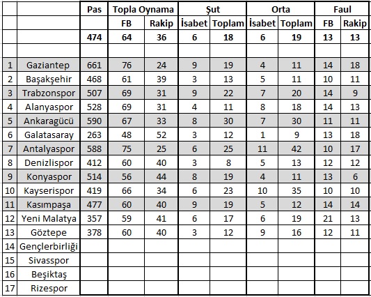Oysa açık farkla kazandığı Gaziantep (4/11) ve Konyaspor (4/11) maçlarında orta sayısı kaybettiklerinin neredeyse dörtte biri kadardı.