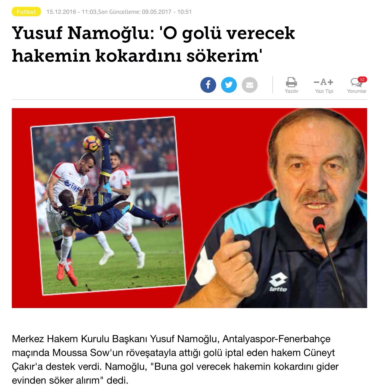 Hakem yorumcusu meslektaşını; kafası rahat değil, karışık, iyi niyetli değil gibi fazlasıyla kasıt unsuru içeren ithamlarla yargılarken acaba bize görevini yaparkenki durumunu mu göstermektedir?