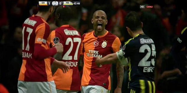 Bu adam sahada neredeyse gölgesiyle bile kavga ediyor, hızına ayak uyduramadığı, peşinden gelişini beğenmediği için; Santos, Gökhan Gönül’le tartışıyor, Baroni’ye fırça atıyor vs.