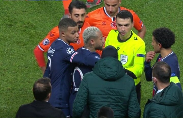 Bu durum karşısında başta Başakşehirli oyuncular olmak üzere ve gelişmeleri yakından takip eden PSGli oyunculardan Mbappe, Neymar ve Kimpembe tepki göstererek hakemleri protesto ettiler.