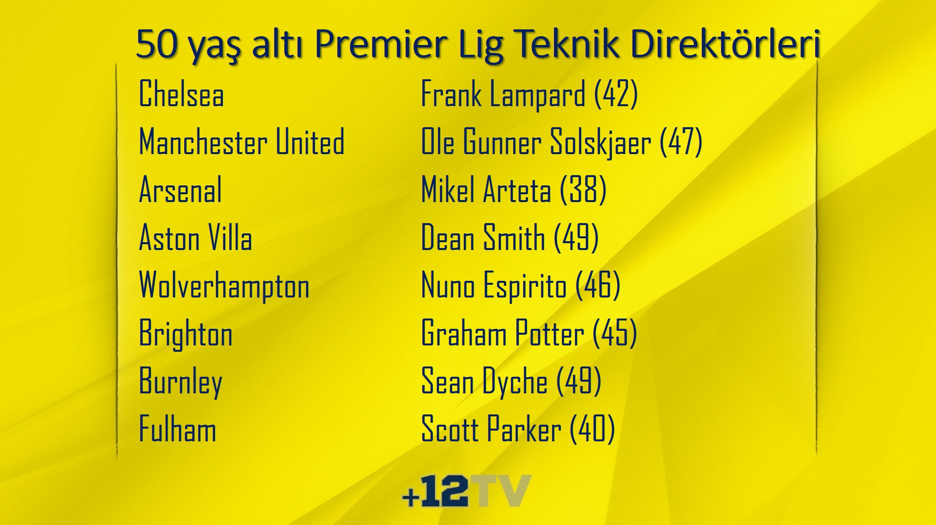 Avrupa’nın en değerli ligi olan İngiltere Premier Liginde 50 yaşın altında görev yapan teknik direktörleri de bilgi olarak hatırlamakta yarar var.