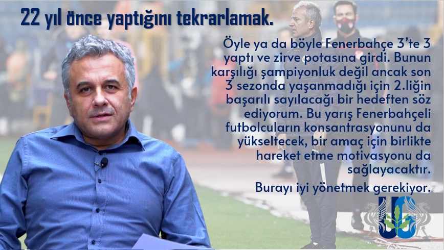 Öyle ya da böyle Fenerbahçe 3’te 3 yaptı ve zirve potasına girdi. Bunun karşılığı şampiyonluk değil ancak son 3 sezonda yaşanmadığı için 2.liğin başarılı sayılacağı bir hedeften söz ediyorum.