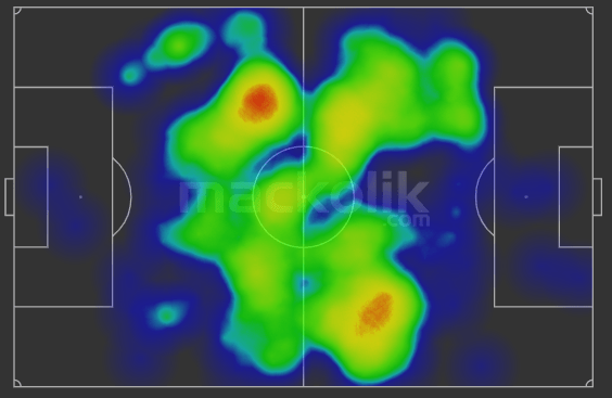 Topun oyunda kalma süresi 59.37 olarak kayıtlara geçti ki maçın çok durduğu, takımların sürekli boşluklara sığınma telaşında olduğu Süper Lig ortalamalarının çok üzerinde bir zamana karşılık geldiğini söyleyebiliriz.