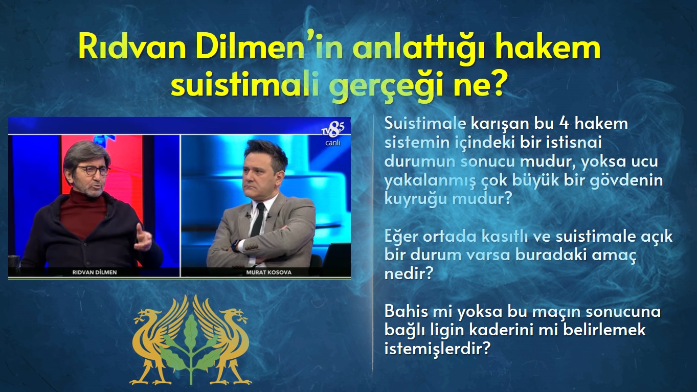 Rıdvan Dilmen kendine göre bir senaryo mu yazıyor yoksa bir gerçeği mi ifşa ediyor bunu ilerleyen günlerde anlarız diye umut ediyorum.